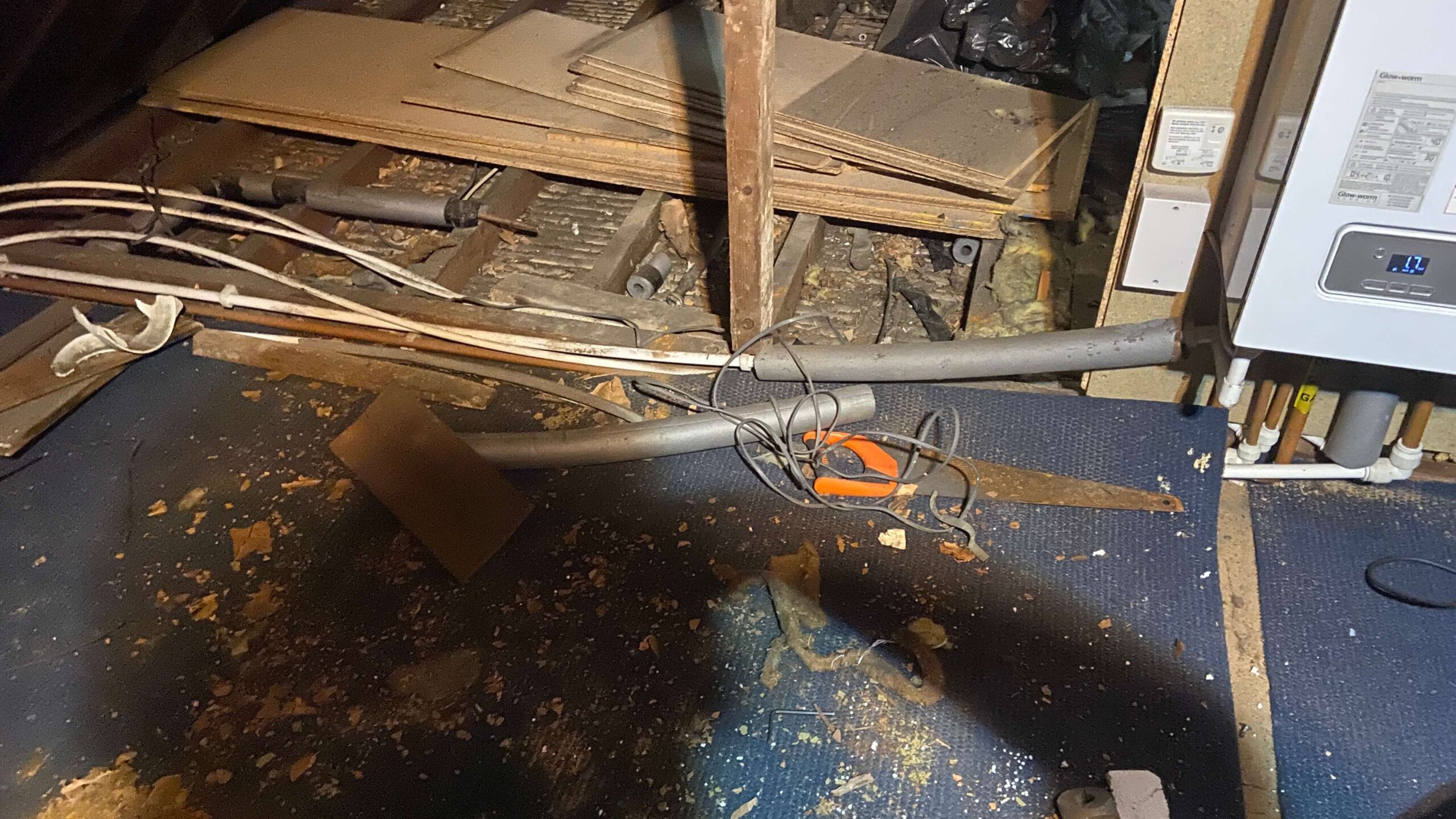 In addition to removing the tank, the job also included clearing general waste, old items stored in the loft, and removing sections of old insulation that were no longer needed.